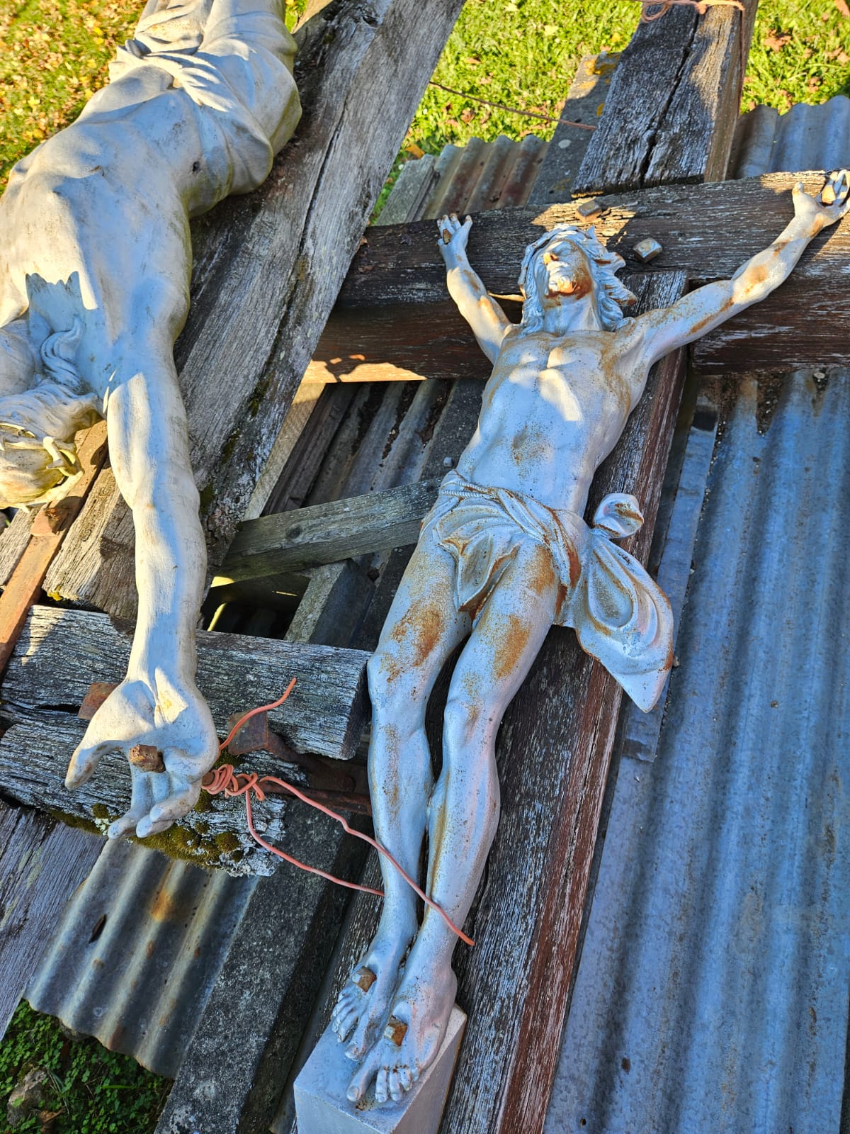 Nous allons remaçonner le socle (percement d'un drain notamment), tailler une nouvelle croix (6m de haut) et restaurer le Christ (sablage, métallisation, peinture).